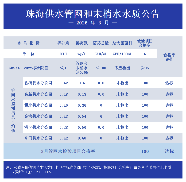 2026年3月珠海供水管网和末梢水水质公告.pdf