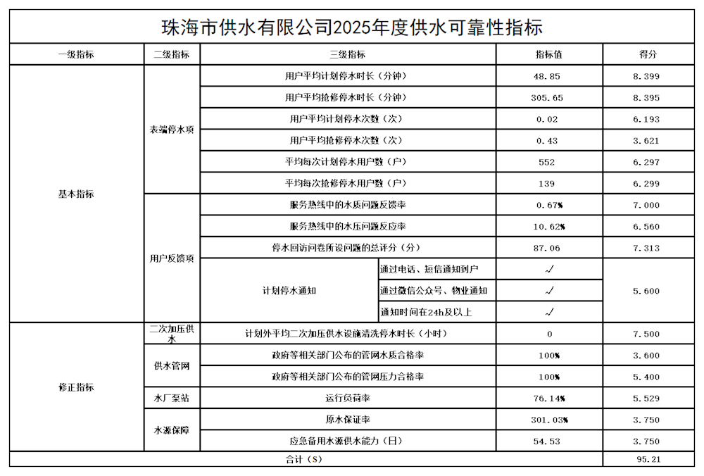 供水可靠性指标